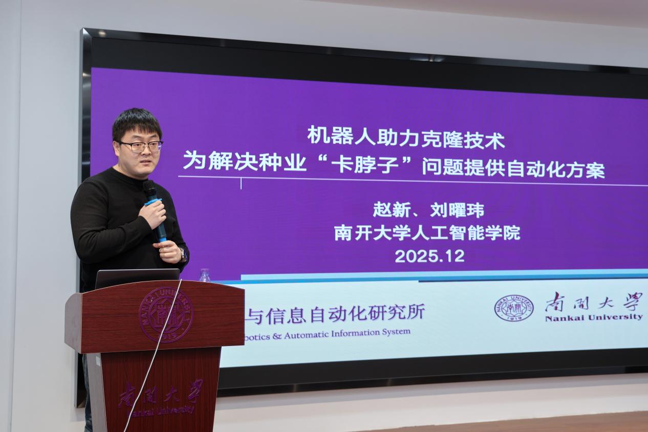 在研讨会期间,南开大学人工智能学院赵新院长团队代表刘曜玮教授就微纳操作机器人科技成果进行了介绍。通过显微视觉、力学分析等核心技术,提高自动化动物克隆技术的准确度和成功率,与天津市农业科学院畜牧兽医研究所、畜禽种业相关企业深度合作,开展畜禽克隆与育种,助力农业新质生产力。