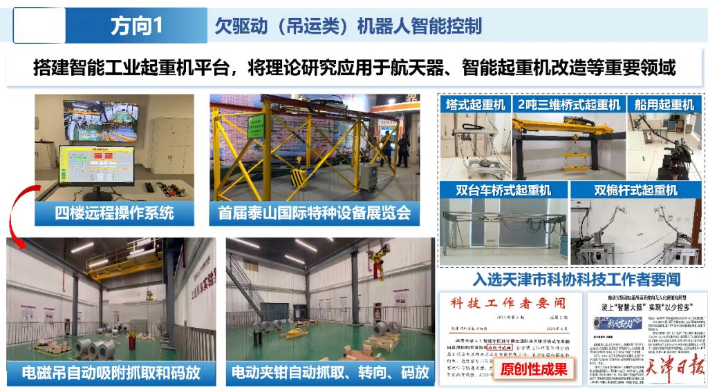 科研项目、成果、获奖、专利 科研项目: 近年来,主持国家自然科学基金青年科学基金项目、天津市面上项目、广东省面上项目、南开大学“学科振兴计划”等,并作为执行负责人参与国家自然科学基金重点项目(1项)、联合基金重点项目(1项)、面上项目(2项)、国家重点研发计划课题(2项)等。 1. 国家自然科学基金青年科学基金项目,2024.01-2026.12,主持。 2. 广东省基础与应用基础研究基金自然科学基金-面上项目,2025.01-2027.12,主持。 3. 天津市自然科学基金-面上项目,2024.10-2027.09,主持。 4. 天津市津南区科技计划项目,2023.11-2024.10,主持。 5. 湖北省重点实验室开放课题,2023.10-2025.09,主持。 6. 国家自然科学基金区域创新发展联合基金(河北)重点支持项目,2021.01-2024.12,参与。 7. “十四五”国家重点研发计划重点专项项目课题,2023.01-2026.05,参与。 8. “十三五”国家重点研发计划重点专项项目课题,2019.06-2022.05,参与。 荣誉/奖励: 基于在智能吊运、仿生机器人自主作业/人机交互、消防机器人集群编组/协同作业等关键技术与应用方面取得的成果,获国内外奖励/荣誉30余项以及国内外会议优秀/最佳/杰出论文奖9项,代表性奖励列举如下: l 2025年,中国科协第十届青年人才托举工程 l 2024年,2023年度天津市自然科学二等奖(排名2) l 2025年,2024年度天津市科技进步二等奖(排名3) l 2025年,中国人工智能学会(CAAI)博士学位论文激励计划(原吴文俊人工智能科学技术奖优秀博士学位论文奖) l 2025年,中国自动化学会(CAA)研究生论文工程-博士论文一等学位论文 l 2024年,天津市青年科技工作者协会优秀青年科技工作者 l 2023年,IEEE RCAR Best Paper in Control Award(最佳控制论文奖,排名1) l 2023年,日内瓦国际发明展铜奖(日内瓦国际发明展是世界三大发明展之一,40余个国家的1000多个项目评出) l 2025年,全国高校自动化类专业青年教师实验设备设计“创客大赛”金奖 l 2025年,机器人顶会IROS 2025 Workshop 最佳论文奖 l 2023年,南开大学优秀博士学位论文 l 2019年,第五届中国“互联网+”大学生创新创业大赛全国总决赛金奖 l 2017年,第十五届“挑战杯”全国大学生课外学术科技作品竞赛一等奖 l 2022年,指导学生获华北五省(市、自治区)大学生机器人大赛(决赛)一等奖,获评优秀指导教师 l 2023年,指导学生获中国国际“互联网+”大学生创新创业大赛天津市铜奖(2项) l 2023年,指导学生获“挑战杯”中国银行天津市大学生课外学术科技作品竞赛二等奖 l 2024年,指导学生获中国国际大学生创新大赛(2024)天津赛区高教主赛道铜奖 发明专利: 作为主要发明人获授权/受理国家发明专利7件,登记软著4项。 |